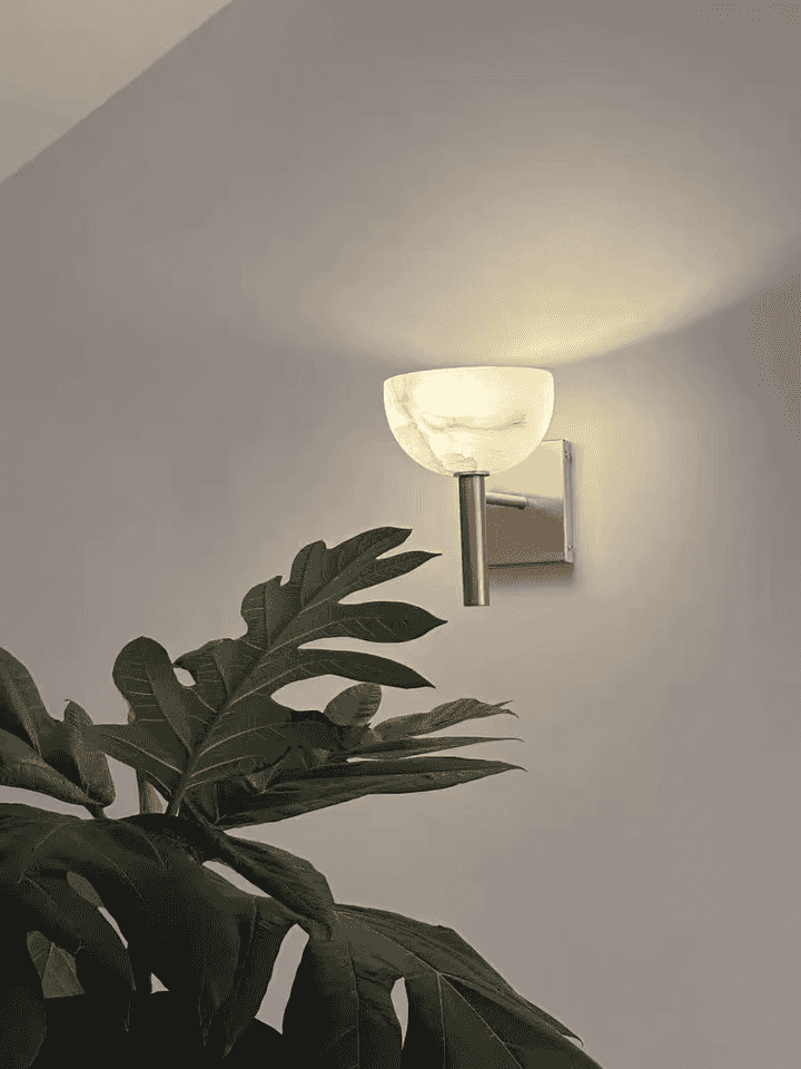 Each Spanish Alabaster stone lamp showcases a natural artistic sense through different mineral deposits and texture variations. Its simple outline perfectly matches the retro-modern space.