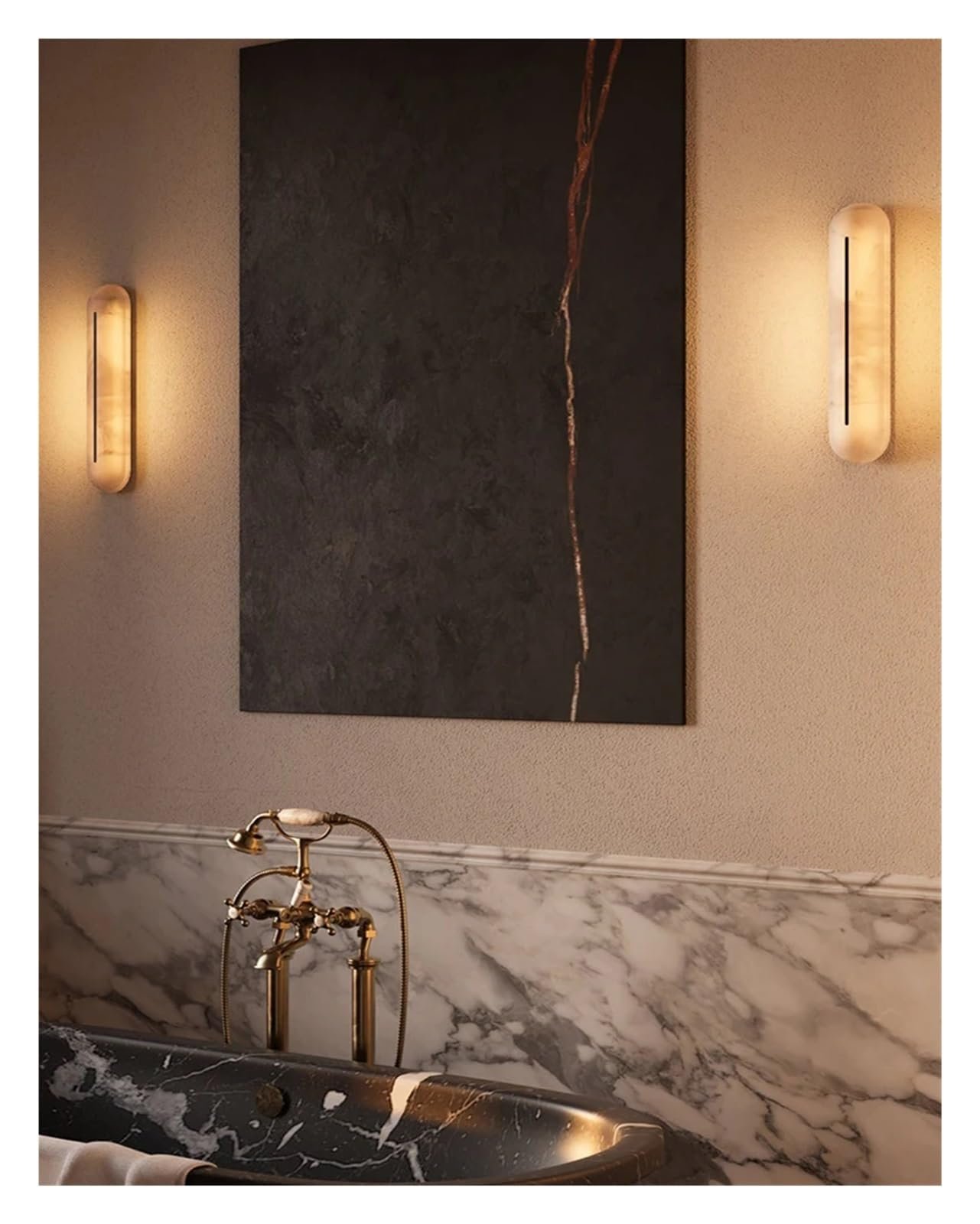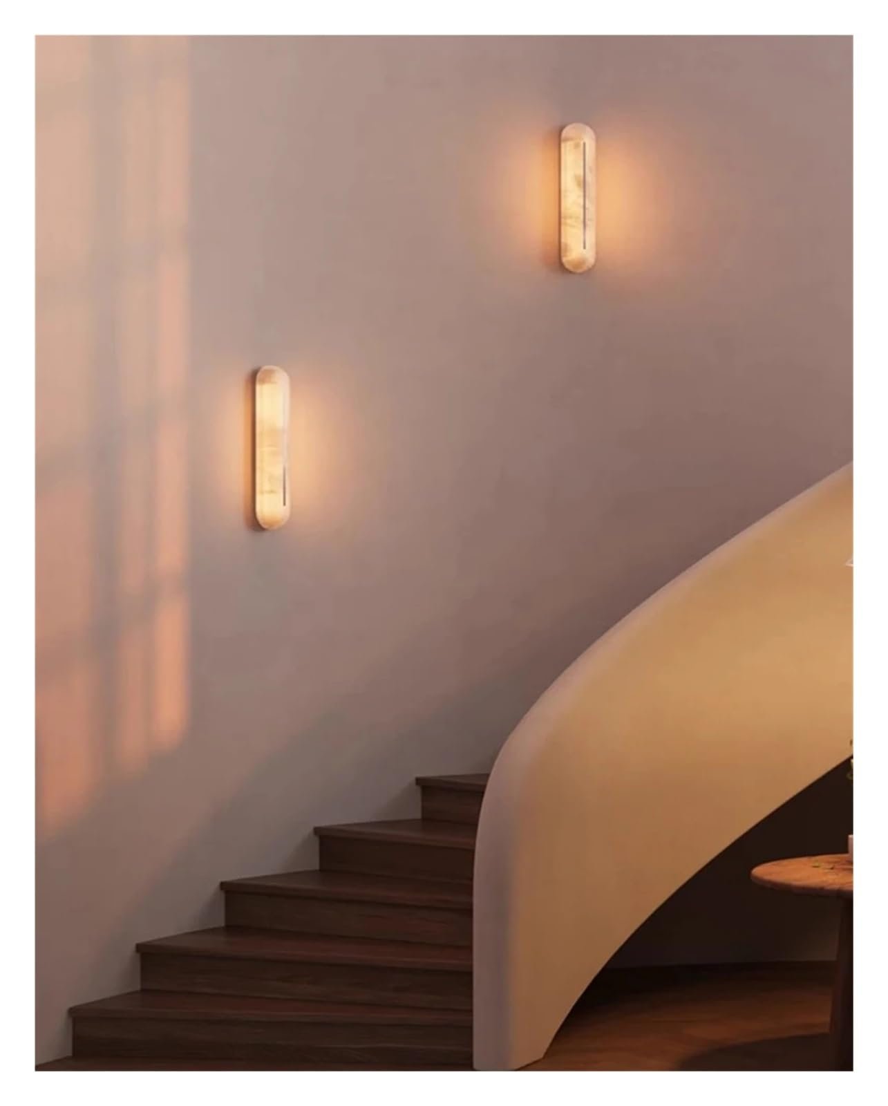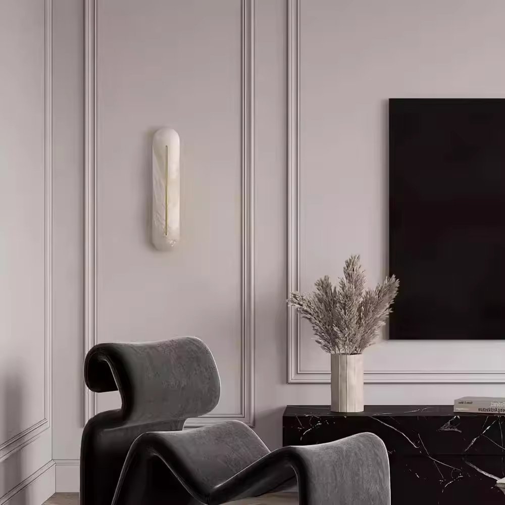 Each Spanish Alabaster stone lamp showcases a natural artistic sense through different mineral deposits and texture variations. Its simple outline perfectly matches the retro-modern space.